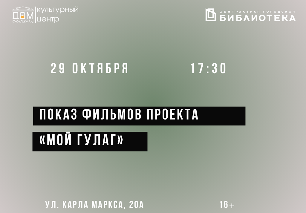 29 октября в 17:30 в культурном центре состоится показ фильмов проекта «Мой ГУЛАГ».