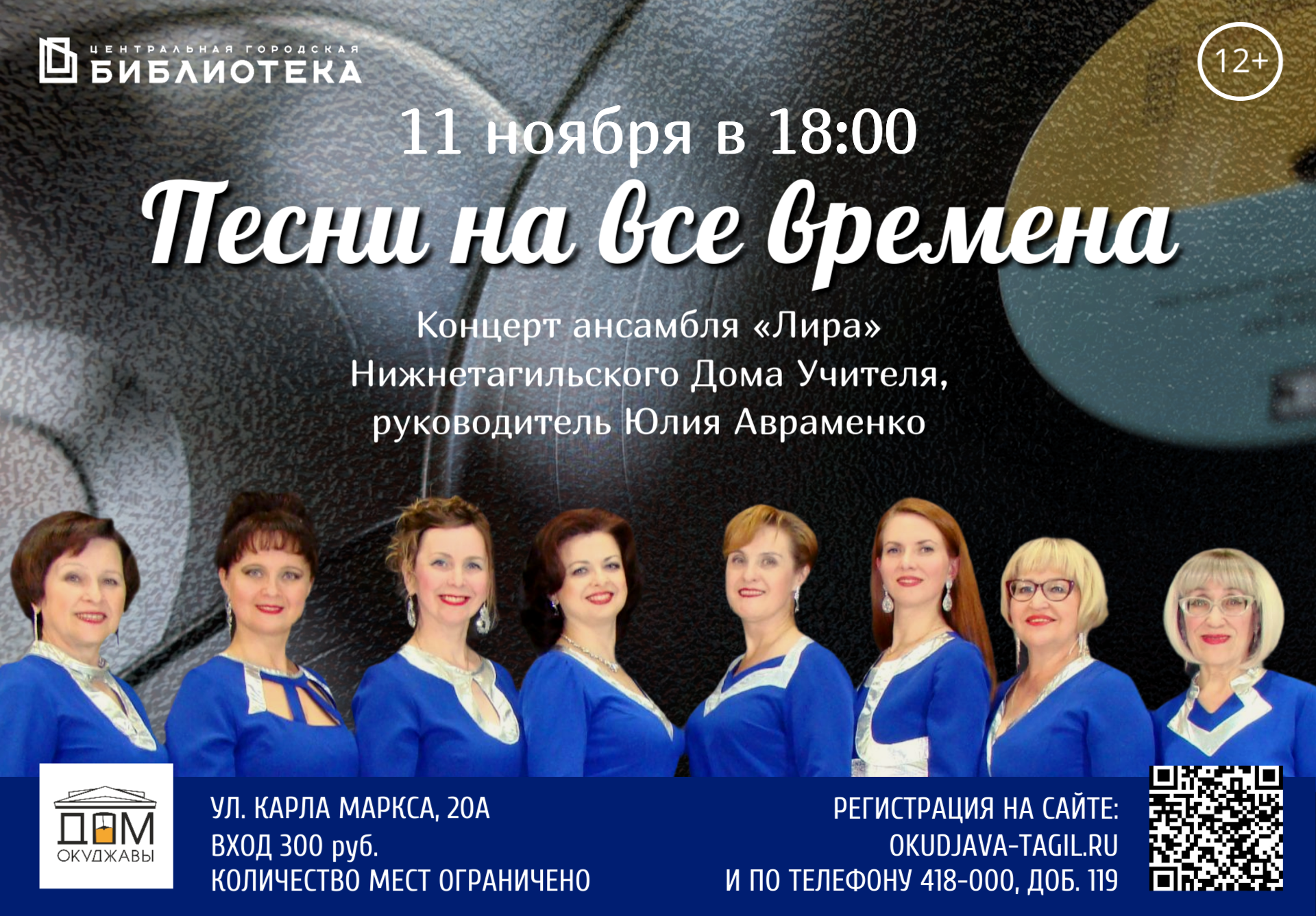 11 ноября в 18:00 в Культурном центре «Дом Окуджавы» состоится концерт ансамбля «Лира» Нижнетагильского дома учителя.
