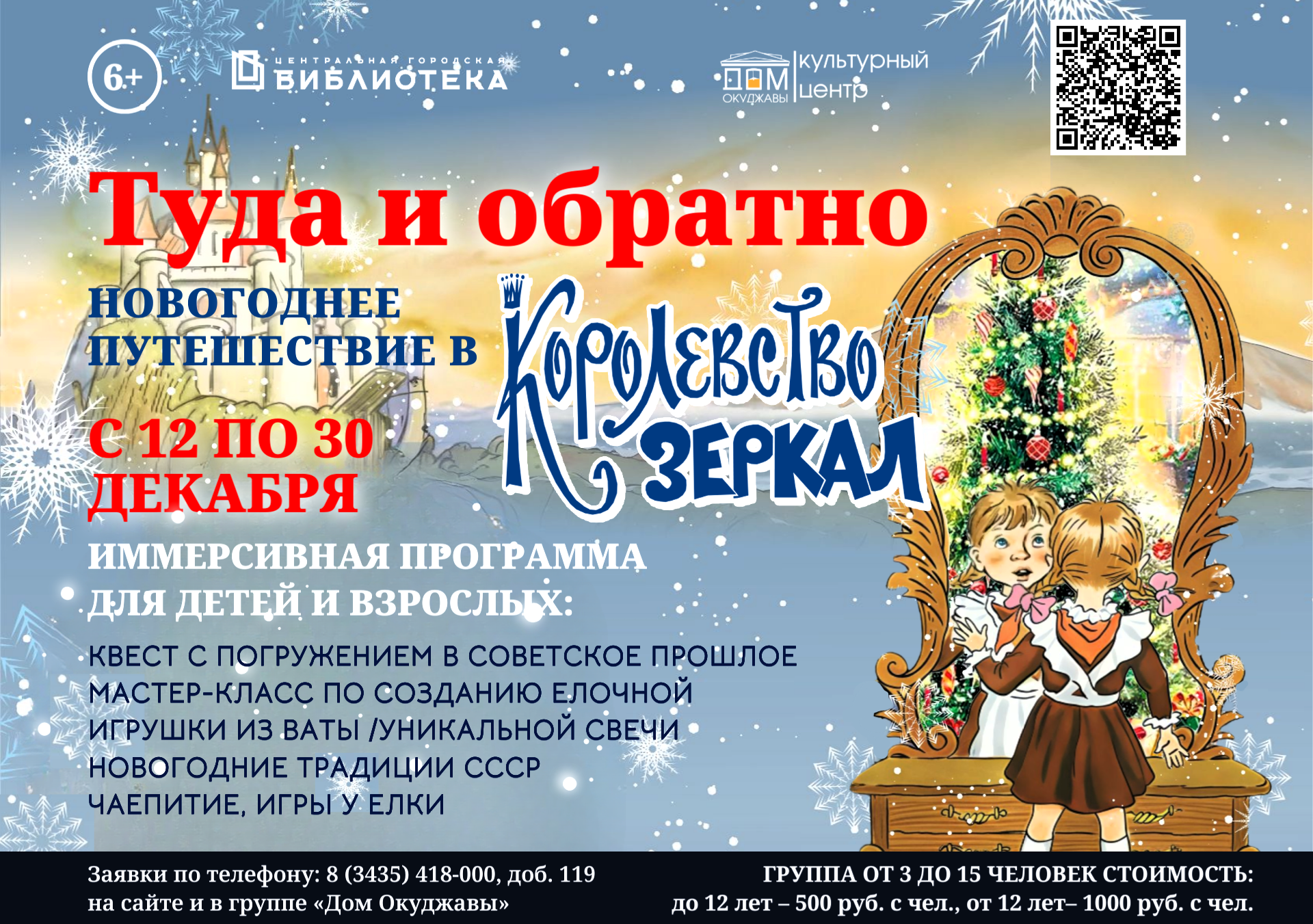 С 12 по 30 декабря культурный центр «Дом Окуджавы» приглашает на новогоднее приключение «Туда и обратно: путешествие в Королевство зеркал»!