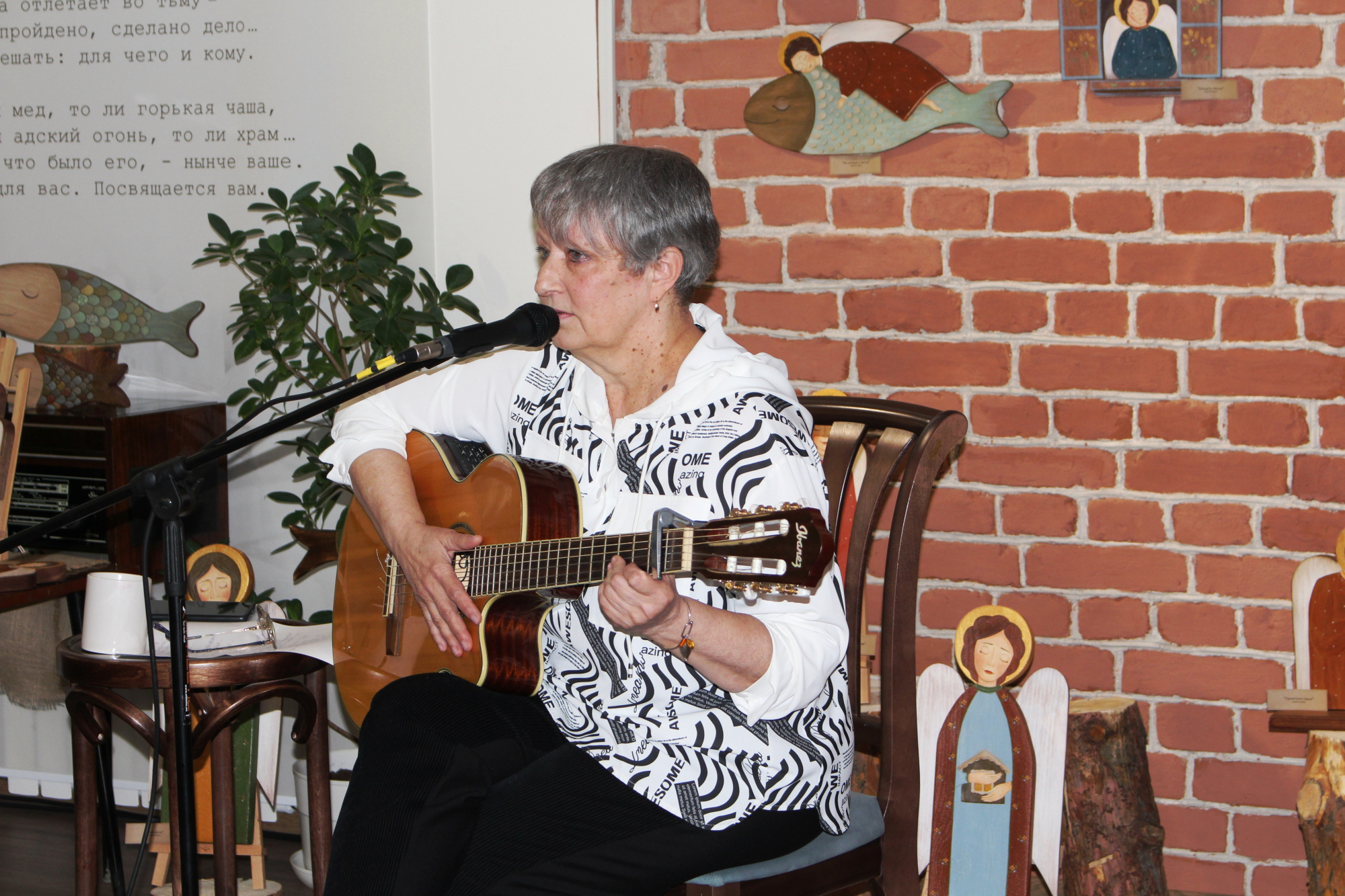 В её репертуаре – лирические песни и ироничные посвящения бардам. Последние она исполняет редко, но в сборниках они есть. Зрители активно включались в диалог. Кто-то признался, что знаком с творчеством автора по интернету, другие подняли руки на вопрос: «Кто слышит меня сегодня впервые?» В зале поинтересовались, как рождаются песни, и услышали ответ: «Случайно. Как засядет в голове какая-нибудь строчка, и вот ты уже знаешь, что она войдёт во вторую строчку третьего куплета».