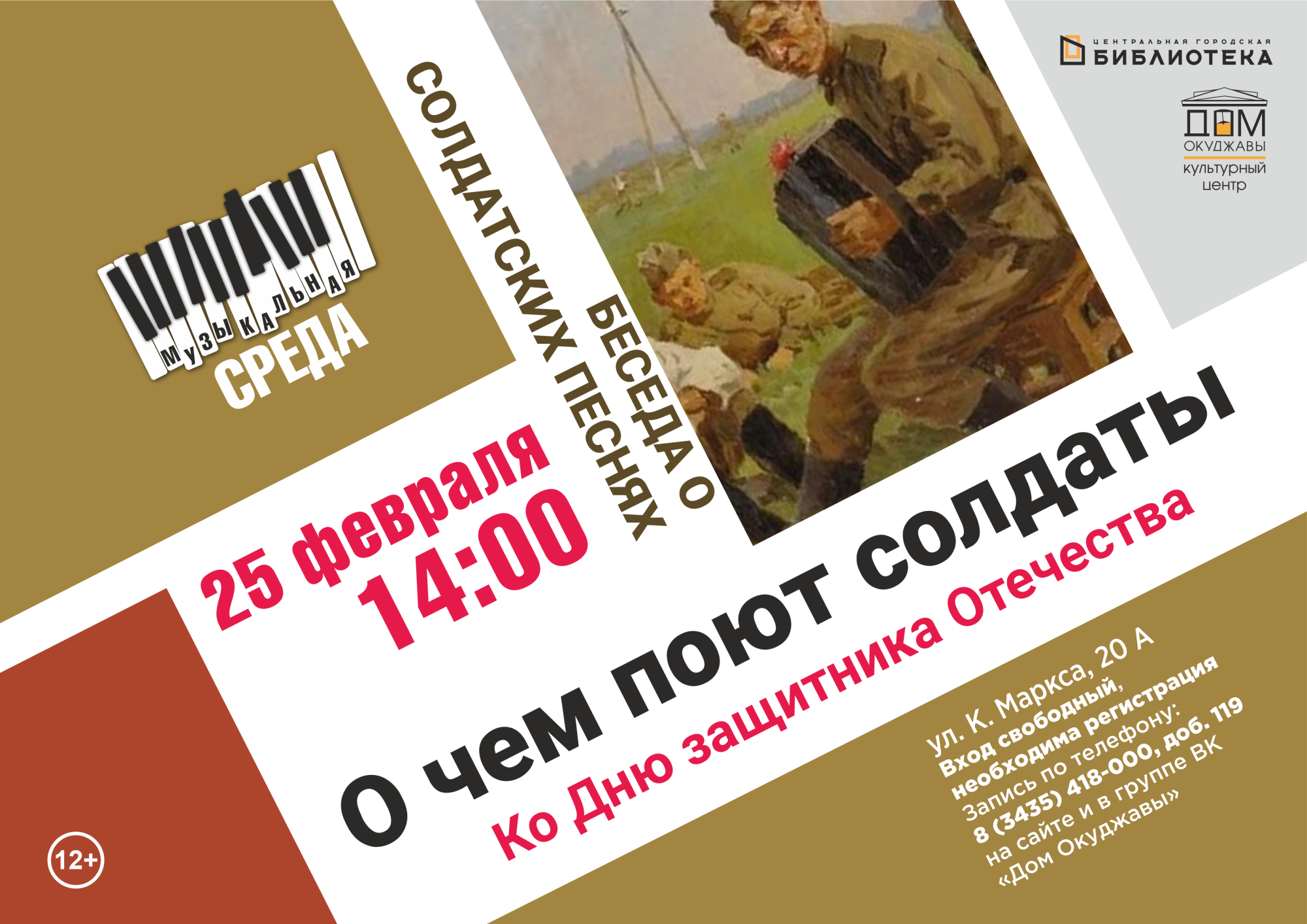 25 февраля состоится беседа в рамках музыкальной среды о солдатских песнях – неотъемлемой части истории России.