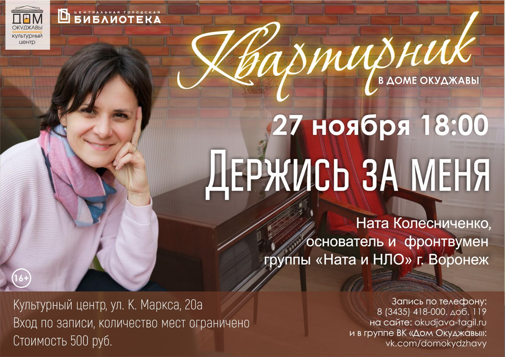 27 ноября в 18:00 в культурном центре «Дом Окуджавы» состоится особенный концерт - квартирник Наты Колесниченко.