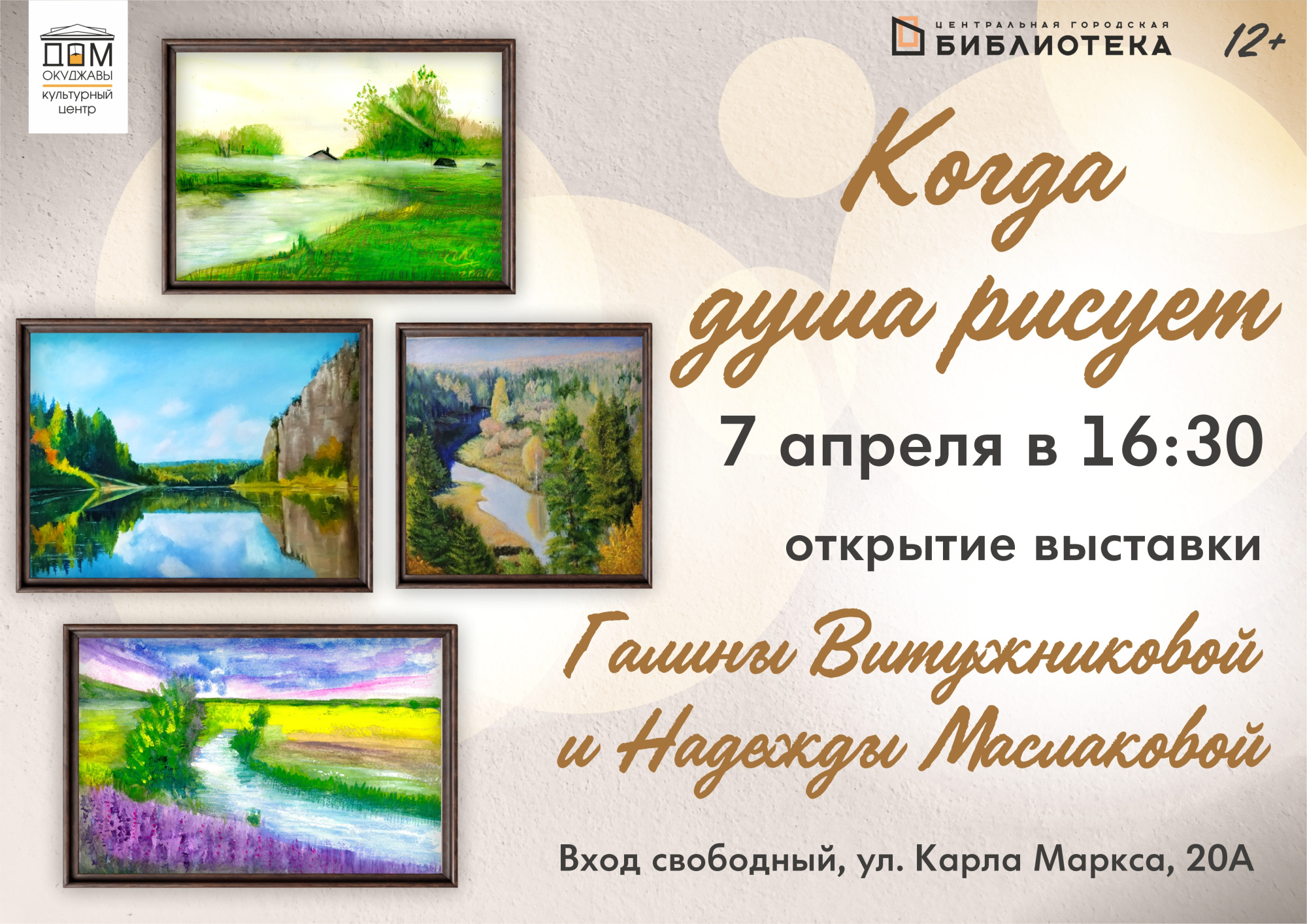 7 апреля в 16:30 в культурном центре «Дом Окуджавы» состоится торжественное открытие выставки «Когда душа рисует».