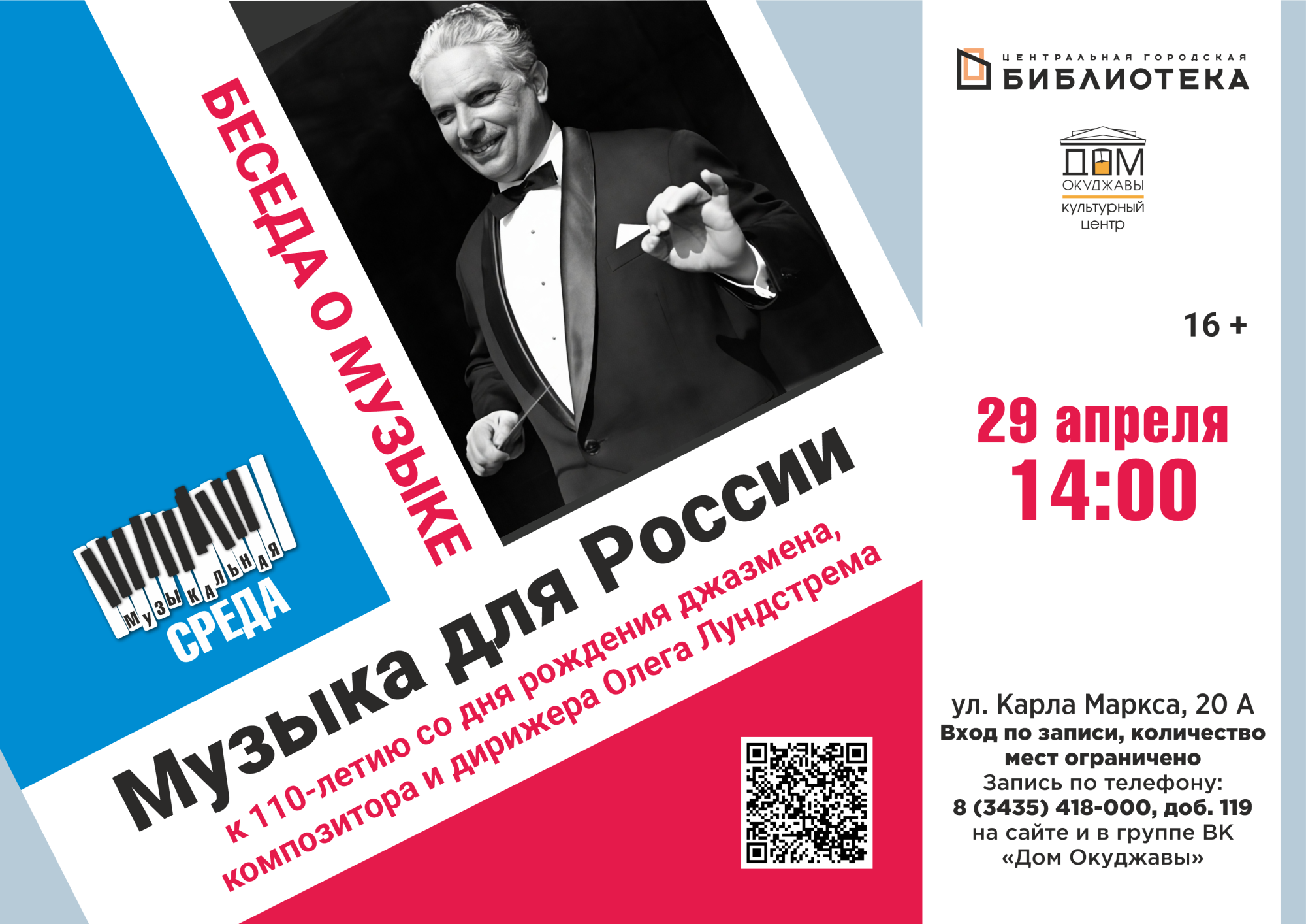 29 апреля в 14:00 состоится беседа в рамках «Музыкальной среды» о жизни и творчестве Олега Лундстрема.