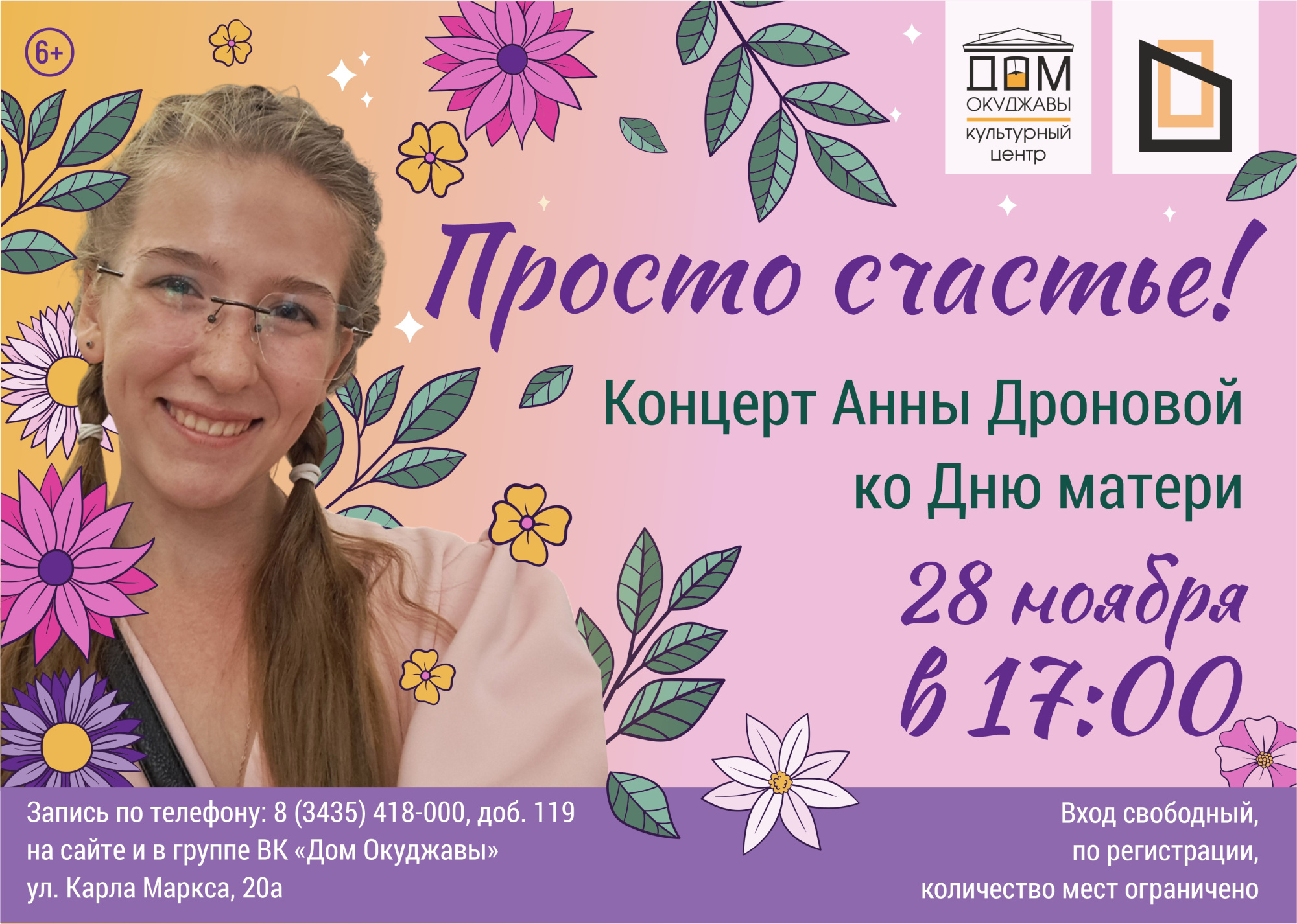28 ноября в 17:00 в Культурном центре «Дом Окуджавы» состоится особенный концерт Анны Дроновой, приуроченный ко Дню Матери.