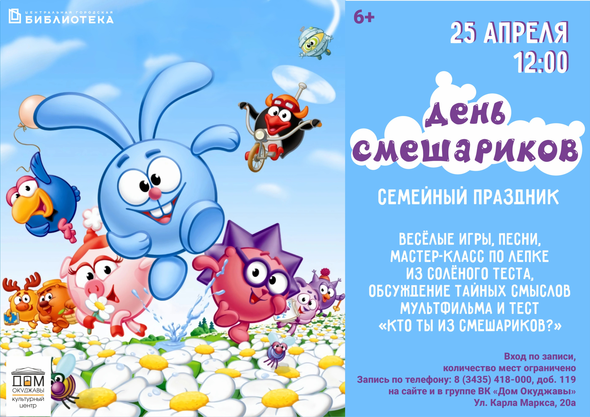 25 апреля в 12:00 в культурном центре пройдет семейный праздник «День смешариков». Гости окажутся в мире популярного мультсериала, где круглые герои учат дружбе, мудрости и любознательности.