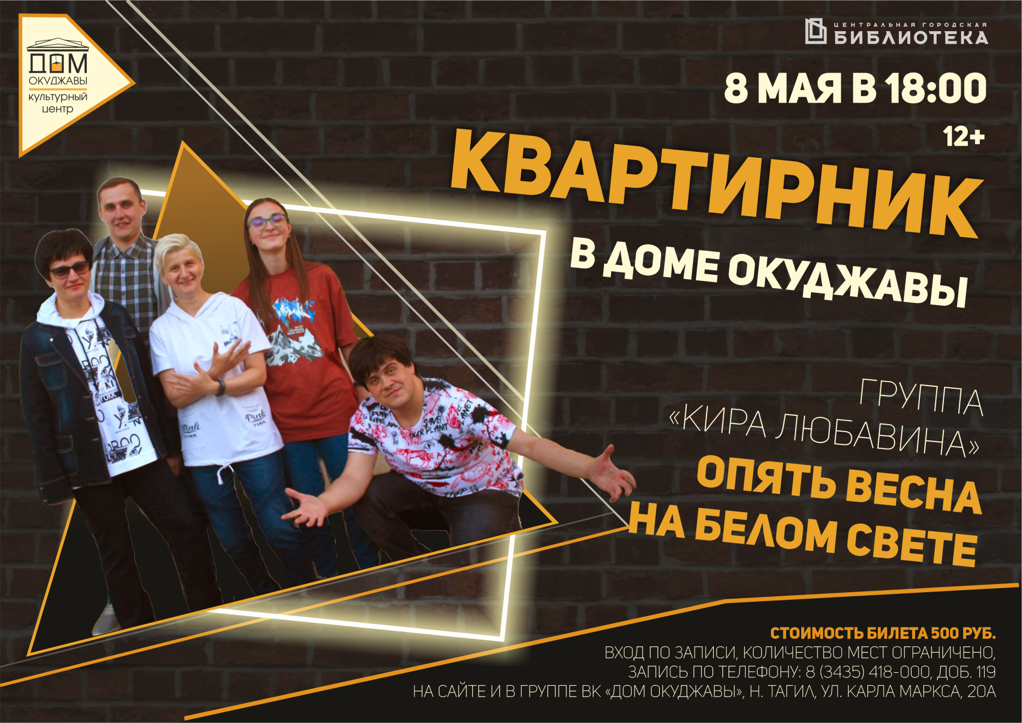 8 мая в 18:00 в культурном центре «Дом Окуджавы» пройдет квартирник группы «Кира Любавина».